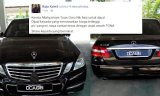 Saya kira cerita saya adalah cukup mudah untuk difahami. Menggunakan isu pembaziran, kereta jenama Merc, adalah isu yang mudah hinggap di fikiran rakyat. Tetapi mereka lupa yang rakyat masih ingat, pembawa cerita ini adalah orang yang sama yang sehingga kini tiada satupun daripada puluhan tuduhan beliau kepada PAS, lekat di mahkamah. Sebaliknya beliau yang menolak daripada menerima surat saman daripada Kerajaan Negeri Kelantan suatu ketika. Saya mencadangkan supaya beliau mengaitkan pembelian Merc ini dengan bayaran RM90 juta oleh Umno dahulu. Saya percaya cerita beliau pasti akan menjadi sedikit lojik atau mendapat belas daripada rakyat. Ditambah dengan gambar cek potostat yang beredar sekarang sebagai ‘bukti sangat kukuh’ PAS menerima duit Umno. Maka tiadalah rakyat tercengang dengan Merc Kerajaan Kelantan ini.