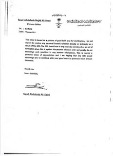 Memandangkan saya bukan lagi Perdana Menteri dan Raja Abdullah telah mangkat (Al-Fatihah), saya rasa adalah bersesuaian untuk saya dedahkan dokumen berikut bagi membersihkan nama saya dari pelbagai tuduhan dan fitnah.