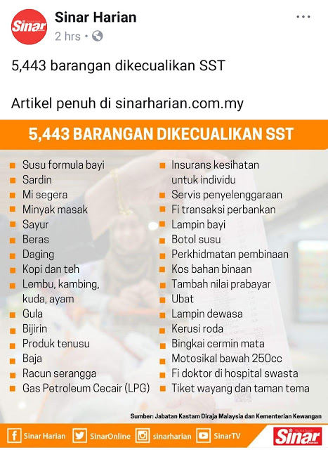 Sebelum kerajaan PH kata kononnya 5.443 barang tak kena SST tapi bila diperhatikan Tambah Nilai prabayar kena SST. MACAM KERAJAAN PH KENCING RAKYAT AJE. Entah-entah ada banyak lagi barang kena SST tapi kerajaan PH kata tidak.