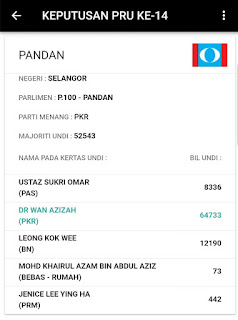 Walaupun ini bukan terbaik tapi ini adalah yang terbaik daripada yang terburuk kerana majoriti di P100 PANDAN pada PRU-14 lalu ialah 52,543 undi.