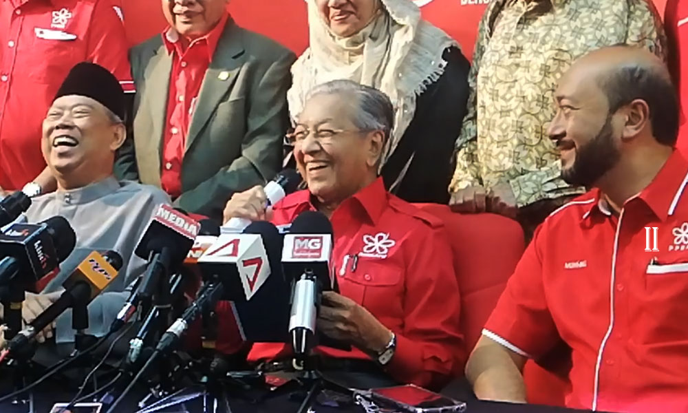 Sidang media dihadiri barisan kepimpinan tertinggi parti itu termasuk pengerusinya Tun Dr Mahathir Mohamad, Presiden Tan Sri Muhyiddin Yassin.