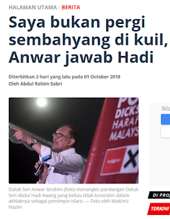 Abdul Hadi Presiden PAS pun tak kata Anwar pergi sembahyang di kuil. Dia hanya kata pendirian Anwar kepada Islam tidak konsisten.