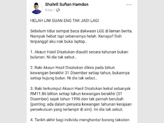 “Ini juga dia (Guan Eng) tak sebut atau buat-buat lupa,” katanya.
