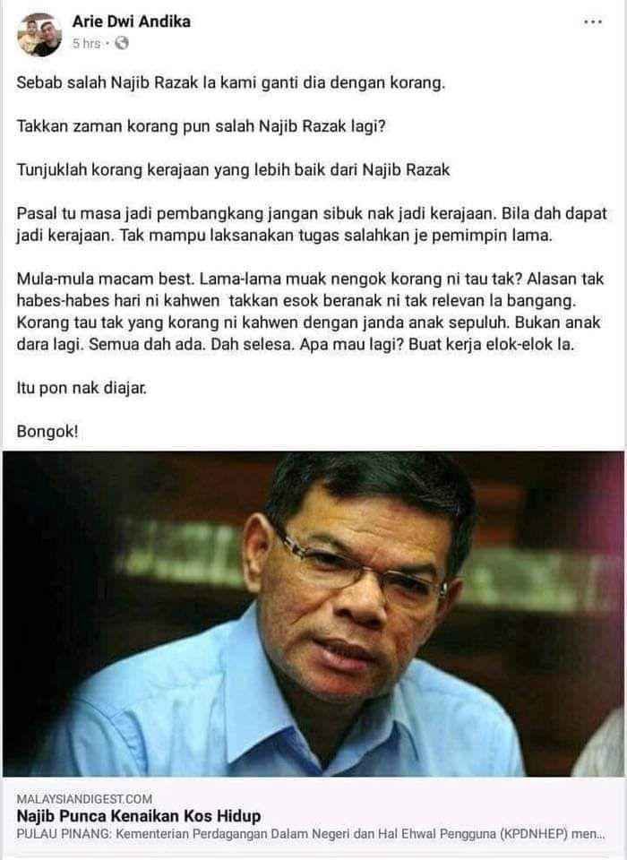 Kenaikan harga barang dulu sebab Najib, sekarang pun sebab Najib juga?