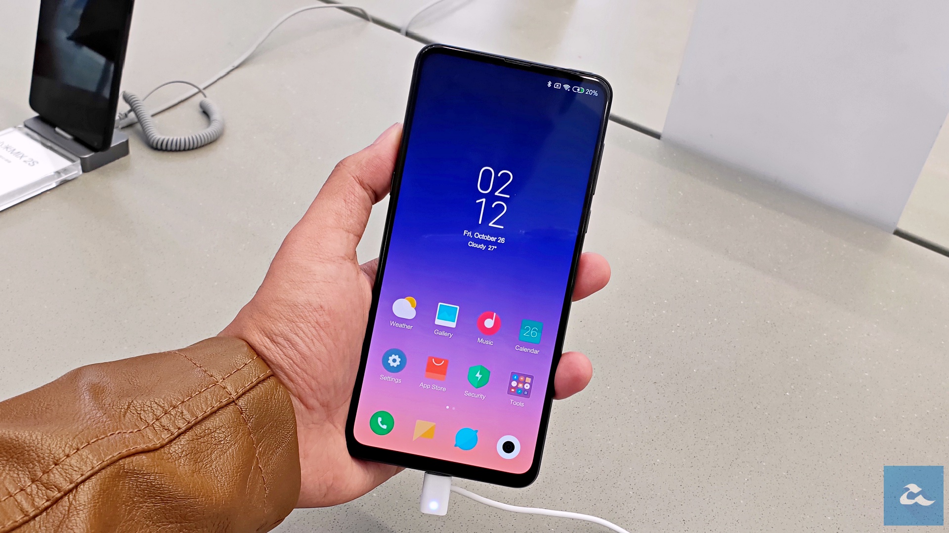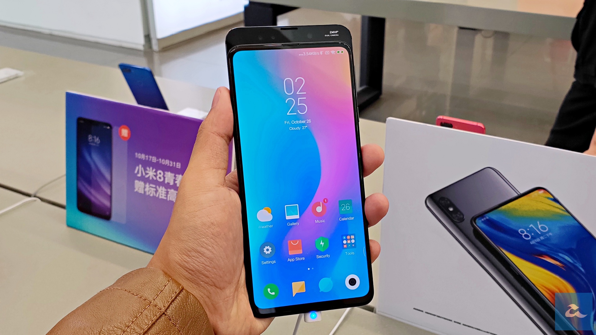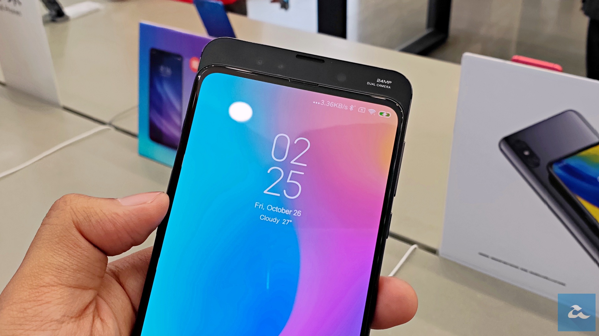 Bergerak ke bahagian hadapan, antara perkara yang menjadi topik bualan kepada peranti ini semestinya rekaan belakang yang boleh dikeluarkan ke atas. Ia dibina berasaskan magnetik, jadi anda perlu menaikkannya secara manual, berbanding Oppo Find X yang dapat membuka ruang atas peranti secara automatik. Xiaomi mengatakan bahagian ini mempunyai ketahanan sekitar 300,000 kali pembukaan, atau kira-kira 8 tahun sekiranya anda membuka bahagian ini sebanyak 100 kali sehari.