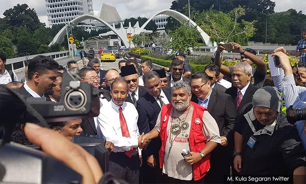 Penggiat pelbagai NGO hari ini berkumpul di depan pagar mahkamah bagi membantah kenaikan kecil kadar gaji minimum sebanyak RM50.