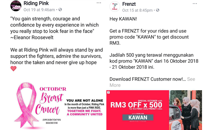 Riding Pink, dari wanita untuk wanita bagi menawarkan peluang ekonomi dan dalam masa sama perkhidmatan e-hailing yang selamat dan mesra kaum Hawa. Walaupun Riding Pink tidak mempunyai aplikasi telefon pintar, ia bagaimanapun berfungsi dengan membuat pendaftaran tempahan awal. Harap-harap adalah aplikasi telefon pada masa hadapan.