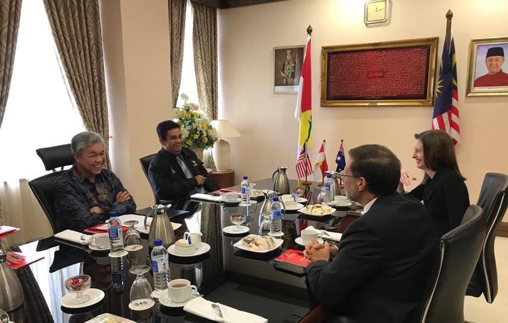 Presiden UMNO, DS Dr Ahmad Zahid Hamidi, menerima kunjungan hormat Pesuruhjaya Tinggi Australia, Andrew Goledzinowski di ibu pejabat parti di sini, hari ini.