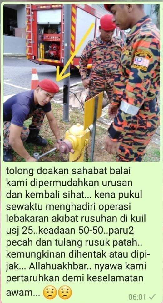 Mangsa merupakan anggota ambulans EMRS dari Balai Bomba dan Penyelamat Subang Jaya, yang bergegas ke lokasi susulan panggilan kecemasan pada jam 1.02 pagi.