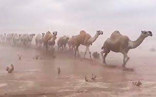 RIYADH - Sebuah rakaman video memaparkan dua lelaki menggembala sekawan unta di kawasan gurun yang digenangi air banjir ketika hujan lebat dan ribut pasir melanda kini tular di internet, lapor rangkaian televisyen Rusia, RT baru-baru ini.