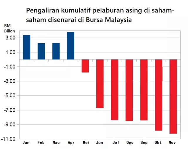 “Pengaliran masuk tiba-tiba berubah kepada pengaliran keluar. Sebanyak RM14.2 bilion dana pelaburan asing sudah keluar dari Bursa Malaysia sejak Mei sehingga kini.