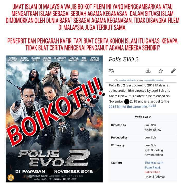 MR : Jika semua bersatu dan sudah pasti akan berjaya. Kerjayaan kali ini akan membuatkan mereka lebih berhati-hati untuk perkara melibatkan Islam. Siapa yang untung kita semua. Hilangkan perbezaan mari kita bersatu kali ini boikot filem POLIS EVO 2