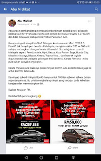 4) kalau betul nak bagi subsidi kpd golongan sasar, jadikan sahaja database BSH @ BR1M tu sebagai mekanisme pengenalpastian instead of ikut CC kereta. Tu lebih tepat ke sasaran. Jika tidak, kekalkan sahaja sistem subsidi pukal sepertimana yg diamalkan masa era Najib tu.