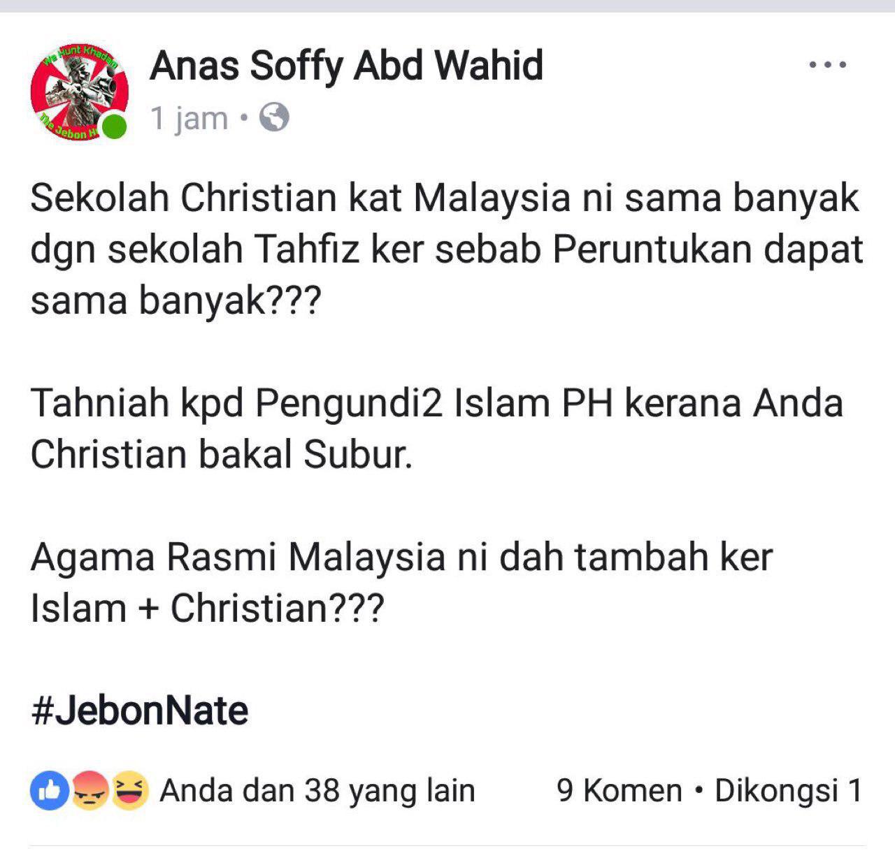 RM25J diambil daripada peruntukan Sekolah Agama dalam bajet 2018 diberi kepada SMJK dengan tambahan RM12J untuk Sekolah Persendirian Cina.