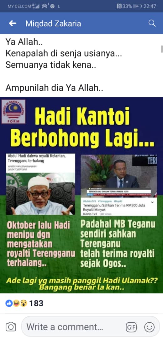 Oleh kerana tak ada isu mereka jadikan perkara ini isu. Mereka malu bila kerajaan PAS Terengganu hapuskan cukai pintu sedangkan kerajaan PH naikan cukai pintu di Penang.