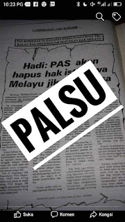 Merujuk kepada dua keratan akhbar yang disebarkan oleh pihak yang tidak bertanggungjawab, berkenaan kenyataan YB Dato' Seri Tuan Guru Haji Abdul Hadi Awang berkaitan isu hak istimewa Melayu dan hukum berdemonstrasi.
