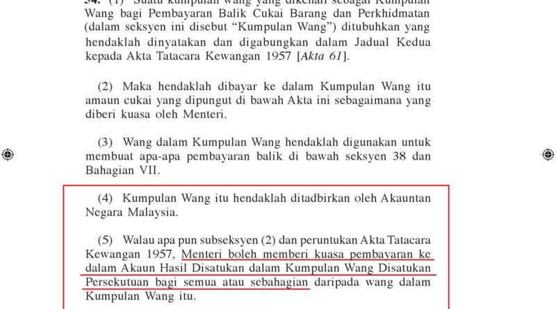 Akauntan Negara pada masa itu memberi pendapat bahawa ianya lebih baik dari segi kawalan aliran wang kerajaan bahawa wang dari kutipan GST dibayar ke dalam Kumpulan Wang Disatukan Persekutuan.