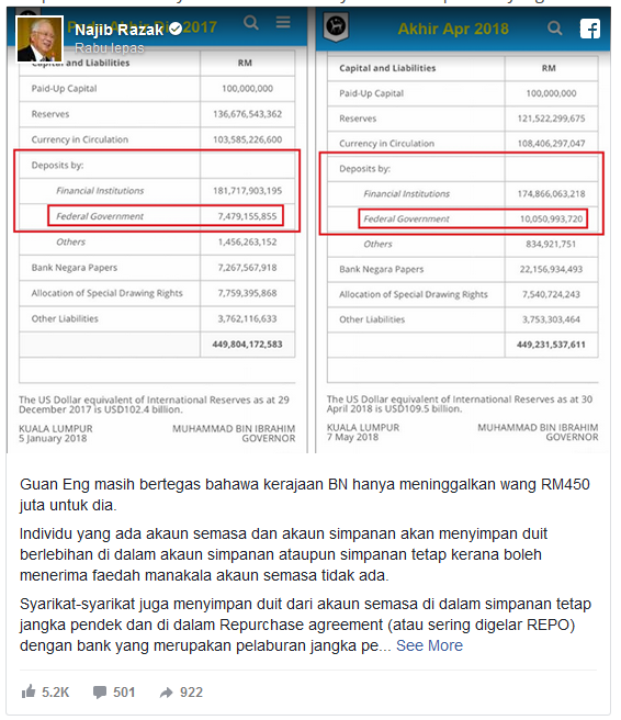 Seperti hantaran saya semalam, Guan Eng juga berbohong bahawa kerajaan hanya ada RM450 juta dan tidak cukup wuntuk membayar balilk tuntutan bayaran balik input GST yang diluluskan.