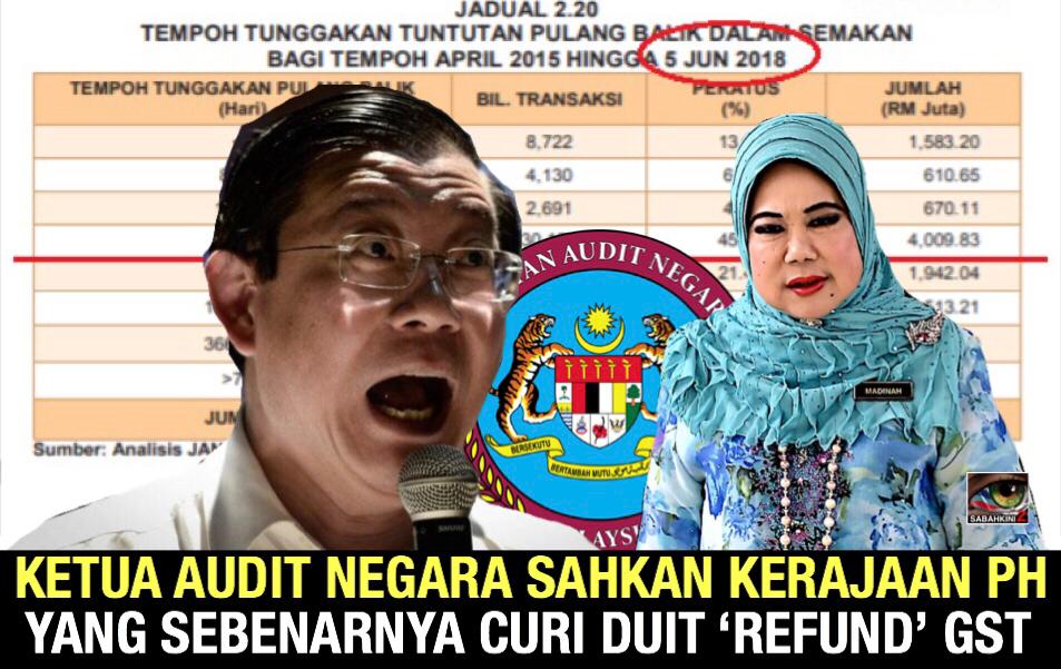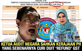 Ketua Audit Negara pula sahkan Kerajaan PH yang sebenarnya curi duit ‘refund’ GST