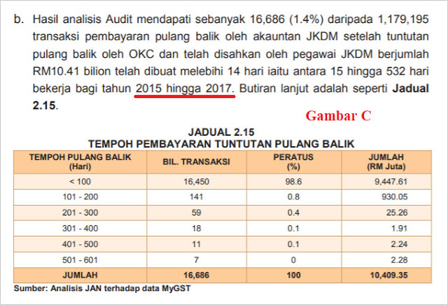 Laporan audit juga mengesahkan bahawa sebelum ini, pihak kastam di bawah pentadbiran BN dianggap cekap untuk membayar balik tuntutan GST (gambar C).