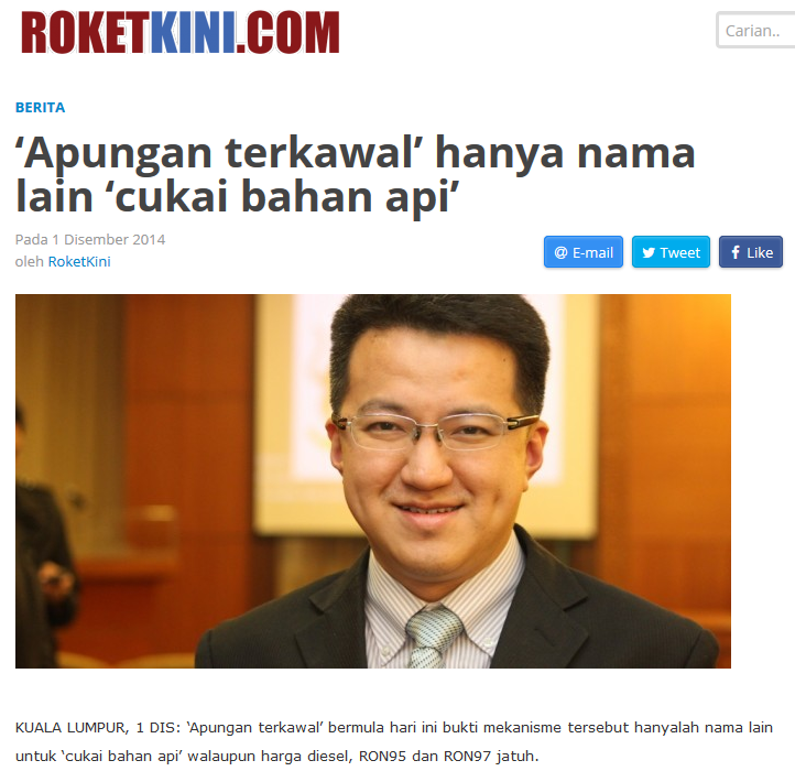 Patutlah Menteri Kewangan DAP nak mengapungkan semula petrol bermula minggu depan.