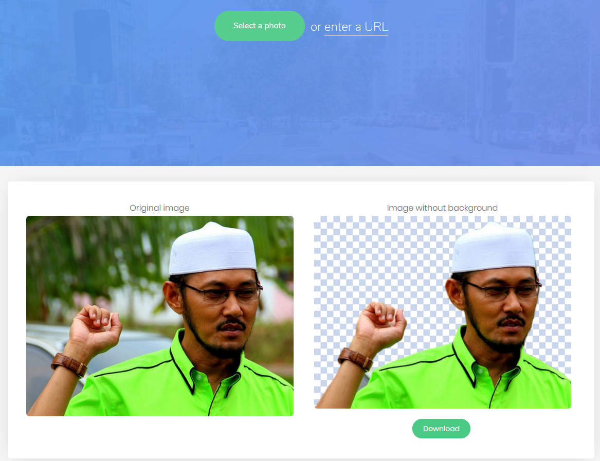Melalui laman ini, ia menggunakan kecerdasan buatan dalam mengenal-pasti gambar latar belakang, dan membuangnya. Proses ini hanya mengambil masa beberapa saat, dan memberikan anda kemudahan untuk memuat-turun gambar dalam bentuk PNG.