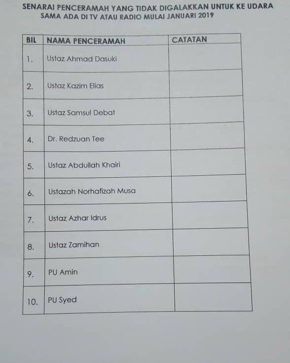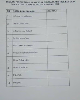 Senarai nama penceramah yang diterima dan diluluskan oleh Menteri DAP untuk siaran TV...kebanyakkan majoriti dari PAN... membuktikan lagi senarai Penceramah Agama yang didakwa di gam sebelum ini adalah betul...hebat Malaysia Baharu, penceramah2 agama pun dipilih dan ditentukan oleh bukan Islam dari DAP...choiii...