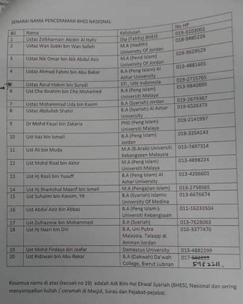 Walaupun Dr Mujahid menteri perosak agama menafikan senarai ini tetapi mengikut sumber yang dipercayai memang benar. Dr Mujahid kini dah pandai menipu.