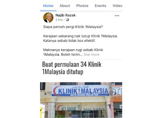Maknanya kerajaan rugi sebab Klinik 1Malaysia. Boleh terima alasan ini? Mereka ingat ini bisnes atau apa?,” soalnya dalam laman Facebook beliau, sebentar tadi.