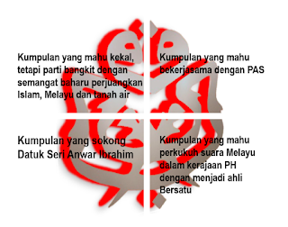 Memetik laporan Berita Harian hari ini, Md Jais berkata, kumpulan pertama ialah mereka yang mahukan parti bangkit dengan semangat perjuangan untuk memelihara Islam, Melayu dan tanah air, selain menjadi pembangkang yang berwibawa di Parlimen serta Dewan Undangan Negeri (DUN).