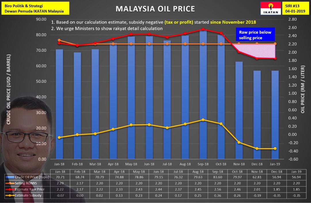 Berdasarkan kenyataan media Kementerian Kewangan bertarikh 4 Januari 2019, harga runcit RON 95 turun 27 sen kepada RM1.93 seliter. Jadi benarlah bahawa rakyat telah membayar hampir 30 sen seliter sebagai “cukai minyak” kepada kerajaan sejak bulan November 2018.