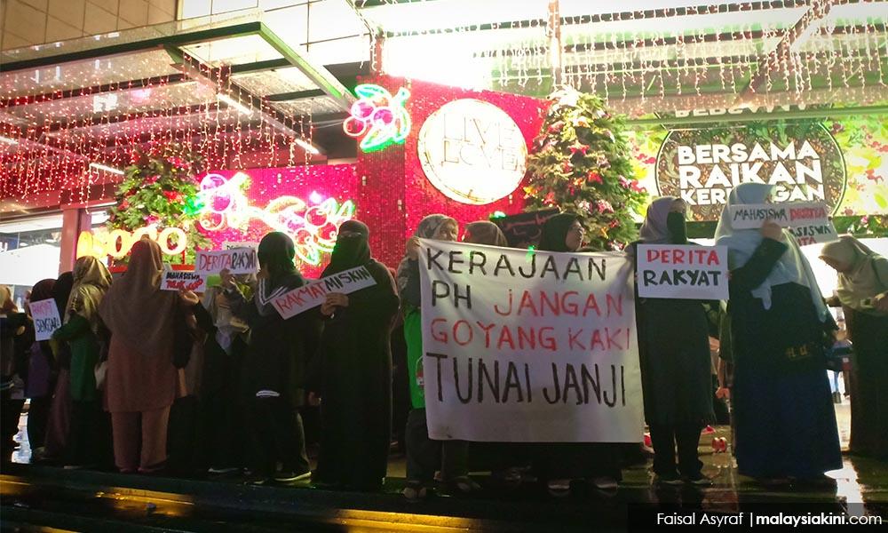"PH telah membohongi rakyat...Pada 2019, tak tahu apa lagi yang akan PH bohong kepada rakyat," katanya ketika berucap di depan Sogo.