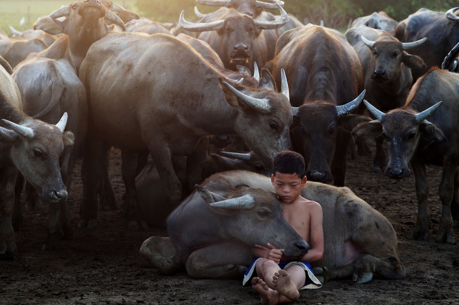 Sejak semalam, tular beberapa gambar seorang remaja lelaki bermanja dengan beberapa ekor kerbau