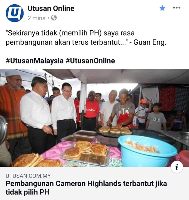 4. Lim Guan Eng hendaklah menghentikan tindakan mengugut pengundi-pengundi Caneron Highlands. Sekiranya betul hendak buat pembangunan di sini, tunjuklah apa projek-projek yang bakal dilaksanakan dan apa manfaat yang rakyat bakal dapat. Jangan main ugut.