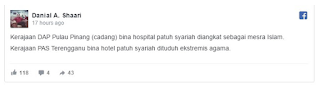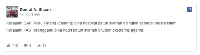 Begitu juga sebelum ini diumumkan bahawa Pulau Pinang akan miliki hospital patuh syariah pertama. Pengumuman ini rata - rata disambut baik dan menggambarkan ‘sikap terbuka’ kerajaan Pulau Pinang kepada ajaran Islam yang merupakan agama persekutuan.