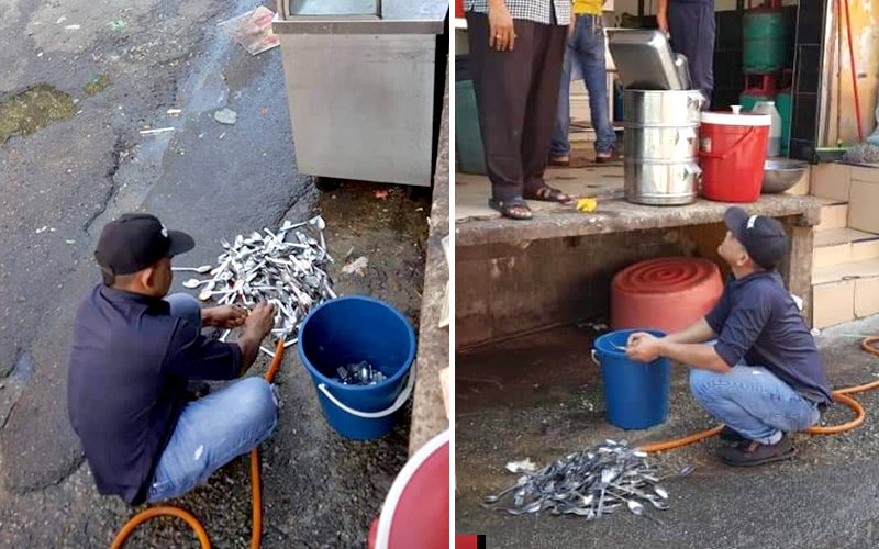 Pengotor! Pekerja restoran letak sudu ‘bersih’ atas jalan