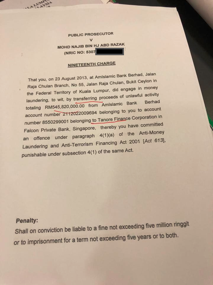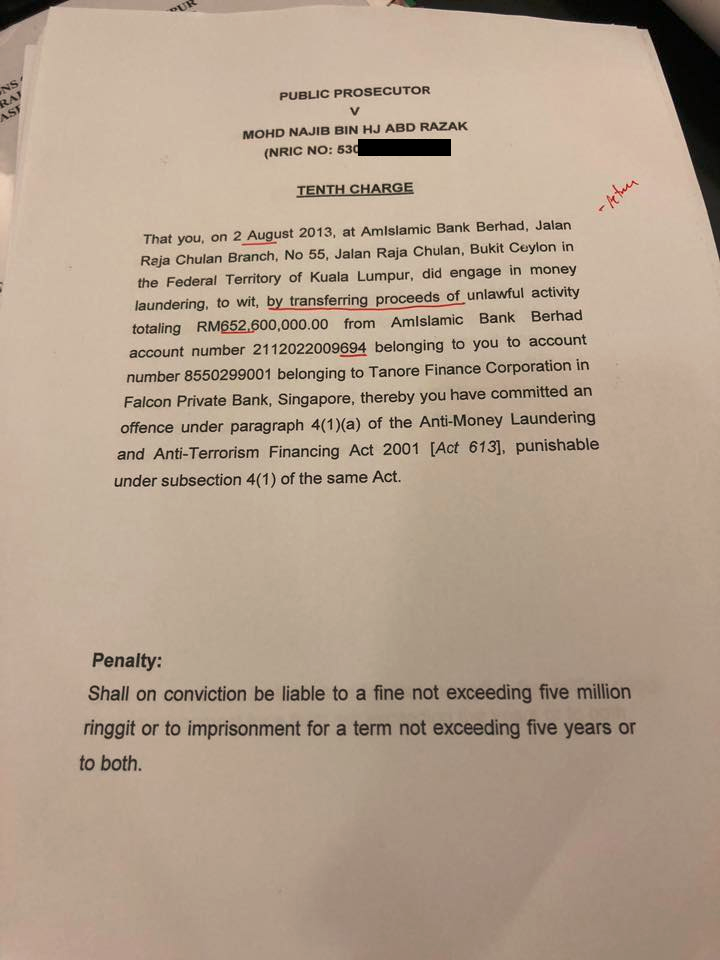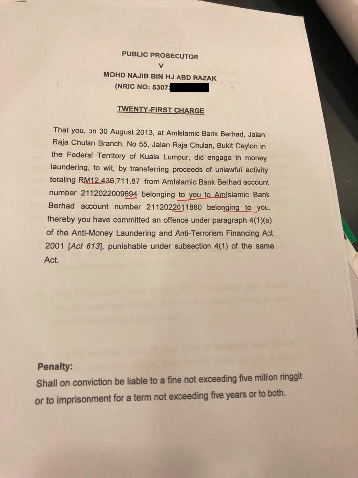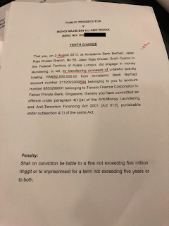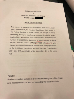 Pada bulan Ogos lalu, saya didakwa dengan 21 pertuduhan pengubahan wang haram mengenai dana yang disebut RM2.6b ini di bawah akta AMLATFA serta 4 pertuduhan di bawah akta SPRM yang merupakan "predicate offence" untuk 21 pertuduhan itu.