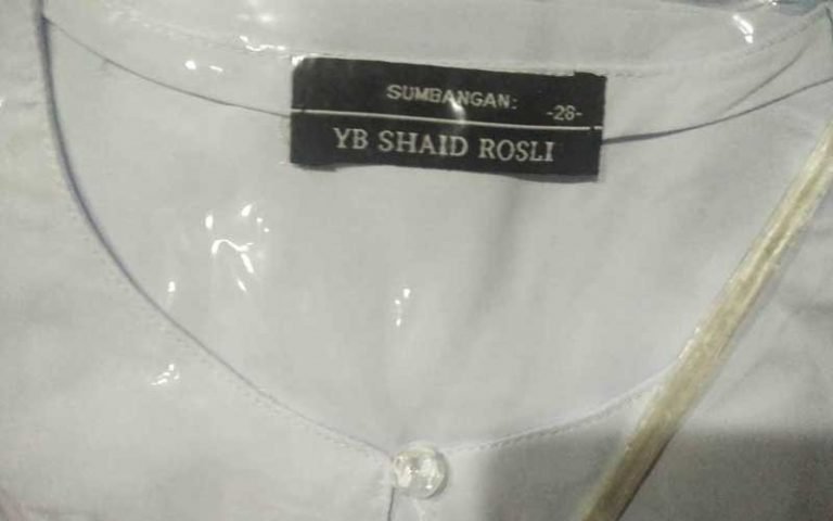 Shaid Rosli menempah 10,000 helai baju seragam sekolah yang tertera namanya untuk diedarkan ke semua sekolah di DUN Jeram.