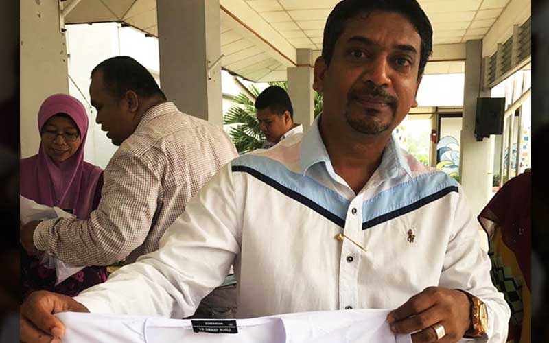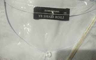 PETALING JAYA: Selepas dikritik menyumbang beg sekolah yang dicetak gambarnya, kini Adun Jeram, Mohd Shaid Rosli tampil dengan pakaian seragam sekolah yang berlabelkan nama pemimpin PPBM itu.