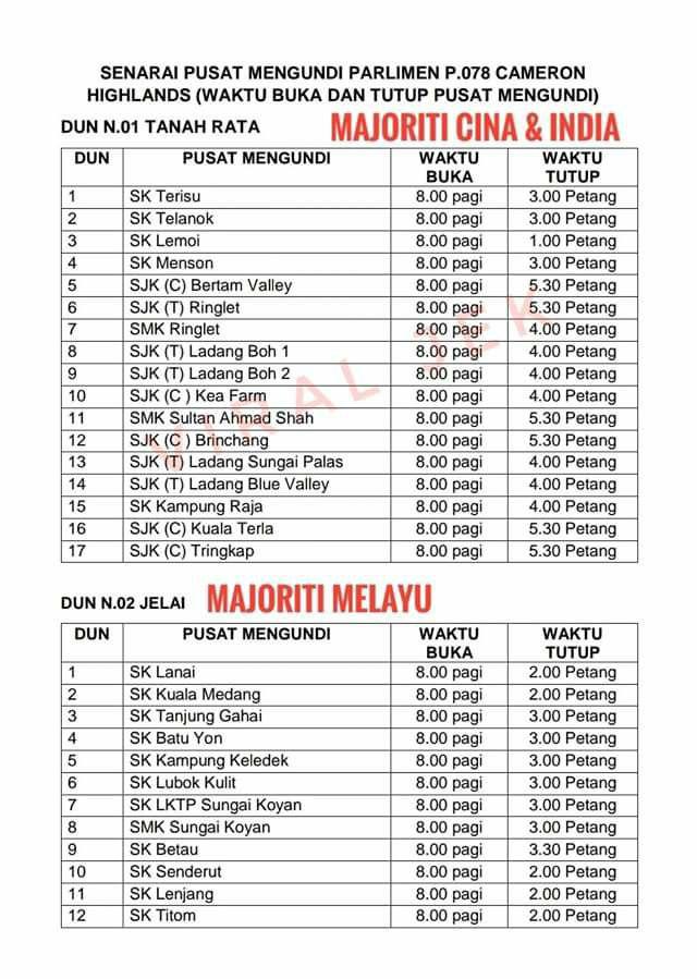 Strategi apakah yang digunakan oleh SPR untuk PRK Cameron Highland ini ? Kenapa kawasan majoriti Melayu ditutup awal tempat mengundi ?