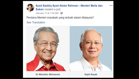 11 Januari lalu, Syed Saddiq Syed Abdul Rahman membuat undian atas talian itu, di antara Perdana Menteri dan bekas Perdana Menteri, Datuk Seri Najib Razak.