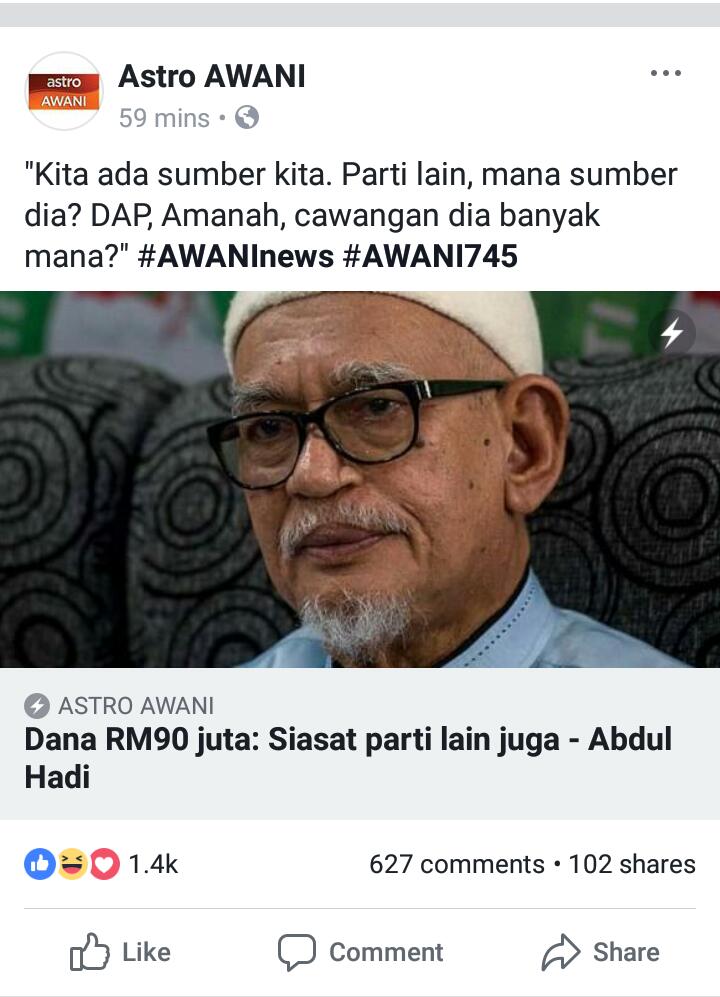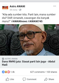 "Jangan peliklah Pas dapat duit. Jelas duit itu dari poket kita sendiri. Orang kita sendiri yang bekerja bertungkus lumus menyumbang derma.