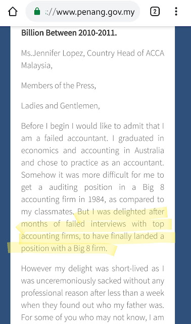 diragui apabila beliau mendakwa pernah bekerja di 'Big 4 Firm' (tiada
