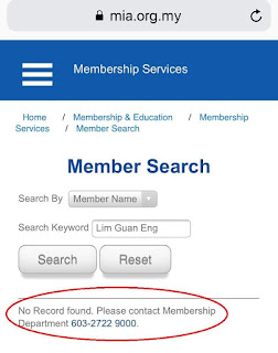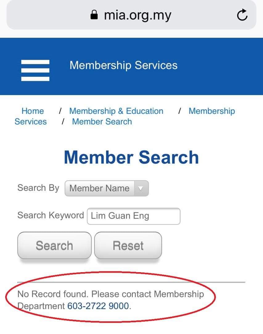 In fact, online checks with the Malaysian Institute of Accountants (MIA) do not show Lim Guan Eng as being a member.