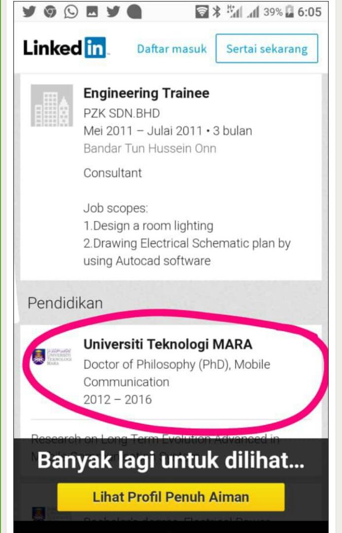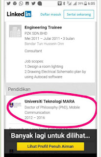 Bidang yang berlainan dari yang didakwa di halaman Linkedin.com.