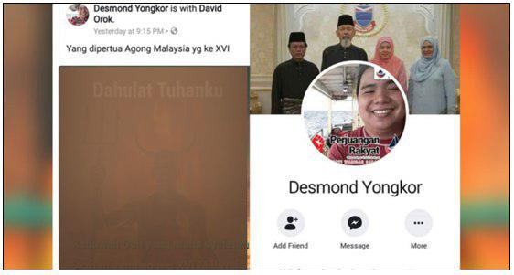 Majlis Suara Melayu Johor (Suara) mendesak kerajaan Pakatan Harapan (PH) mengambil tindakan tegas terhadap pengguna Facebook, menggunakan nama akaun ‘Desmond Yongkor’ yang tidak menghormati institusi beraja di negara ini.