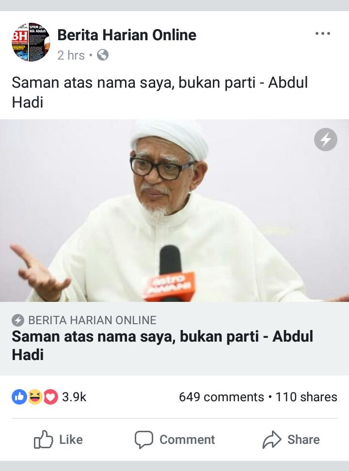 PAS sebelum ini dilaporkan membayar lebih RM2 juta kepada peguam yang mewakili Abdul Hadi dalam kes saman fitnah itu.