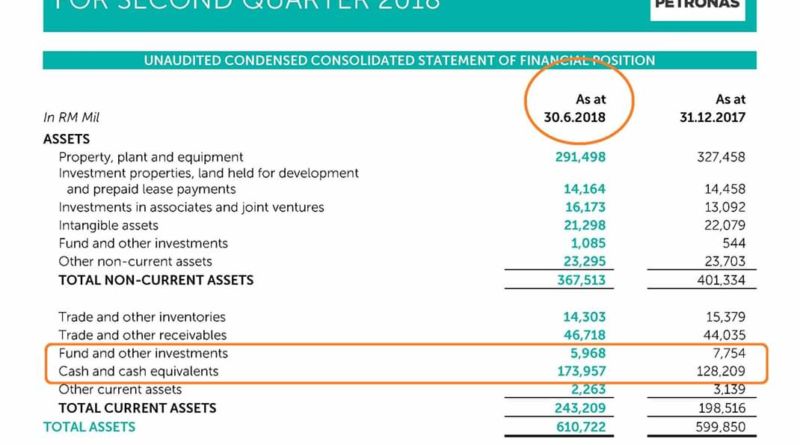 Rizab tunai Petronas meningkat kepada hampir RM180 bilion pada akhir Jun 2018 berbanding RM128.2 bilion pada tiga bulan lalu iaitu pada penghujung 2017.