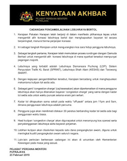 Bagi sesiapa yang gunakan tol seperti sedia kala, tetap bayar harga sama ya - tapi dijenamakan semula sebagai caj kesesakan.