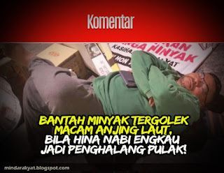 Bantah minyak tergolek macam anjing laut, bila hina nabi engkau jadi penghalang pulak!